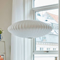 Designed by George Nelson in 1947, the Nelson Bubble Pendant Lamp series comprises a range of pendant lighting solutions with varying spherical silhouettes. Inspired by a set of silk-covered Swedish hanging lamps, the lamps’ organic shapes appear to delicately float overhead, offering a soft and atmospheric light. Available in Ball, Pear, Apple, Cigar, Saucer, Lantern and Propeller variants in different sizes.
