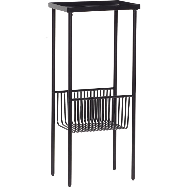 Elevate your living space with this stunning side table from the renowned Danish interior brand Hübsch. Crafted from sleek black metal, this versatile piece seamlessly blends modern aesthetics with functional design. The integrated magazine holder adds a practical touch, making it easy to keep your favorite reads within reach while adding a stylish flair to your decor.