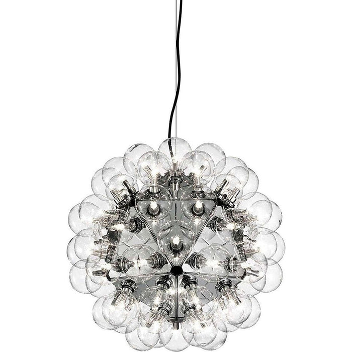 Illuminate your space with the Taraxacum 88 S1 pendant from Flos, a stunning blend of modern design and functional elegance. Crafted from durable aluminum, this iconic chandelier was originally designed by Achille Castiglioni in 1988. Its distinctive spherical shape, with a generous diameter of 80 cm, creates a striking focal point in any room. The pendant is equipped with 5.5 meters of wire, allowing for versatile installation options. The light source features an E27 fitting, accommodating up to 60 watts of LED illumination, ensuring a warm and inviting ambiance while being energy-efficient. The Taraxacum 88 S1 is not just a lighting solution; it’s a statement piece that enhances the aesthetic of your home or office.