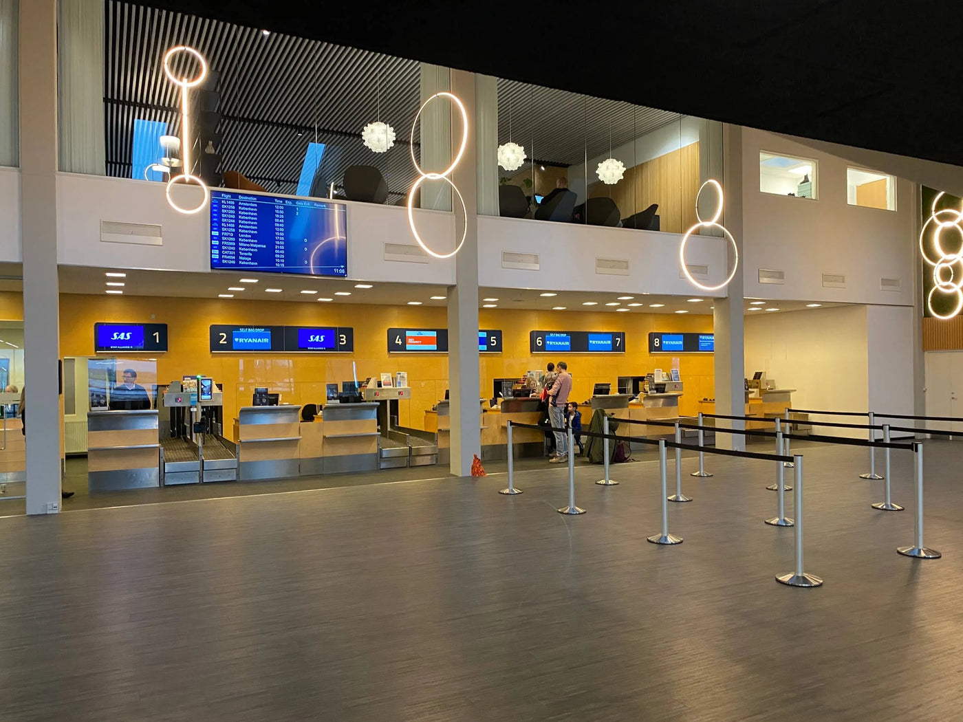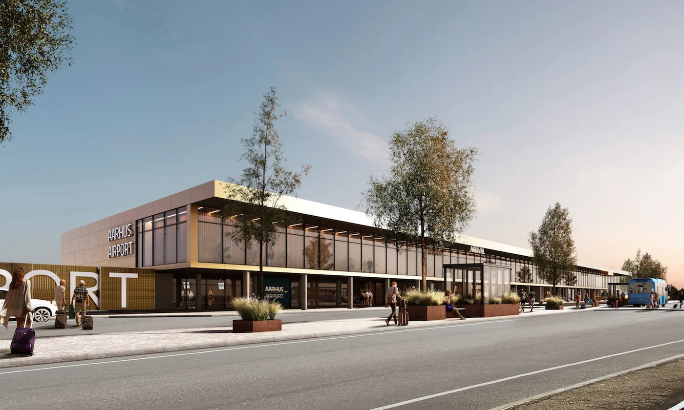 The entire exterior boasts a metallic gold hue, complemented by extensive glass sections that flood the airport's interior with natural light, contributing to a serene environment. Pioneering in hospitality and customer experience, the terminal stands out as the first of its kind, exclusively adorned with contemporary Danish design from the globally acclaimed HAY design house.