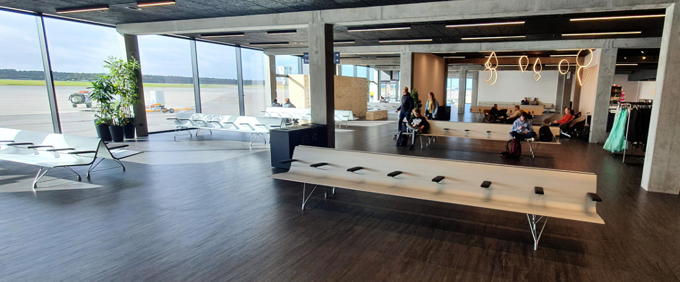 Interior and industrial designer Mette Faarup Jørgensen, of AMPM Design Studio, expressed the objective of creating an airport that defies the conventional expectations. Utilizing high and low back Silhouette sofas, along with Rebar coffee tables and Uchiwa Lounge tables, they fashioned a personalized and comfortable travel setting reminiscent of a welcoming living room.